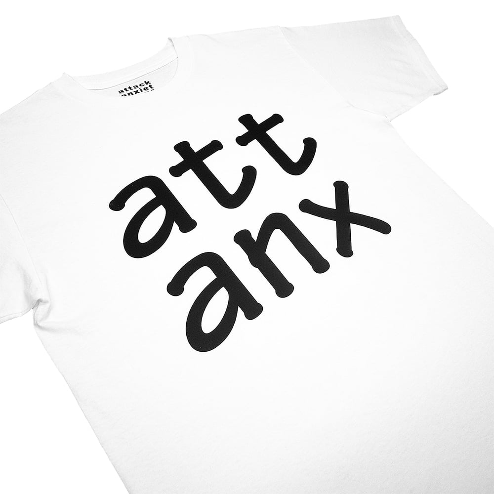 Att Anx - short for Attack Anxiety (and Whatnot or Whatever). Black HTV on White 5.5oz 100% Cotton T-Shirt. Regular fit. Made by Me